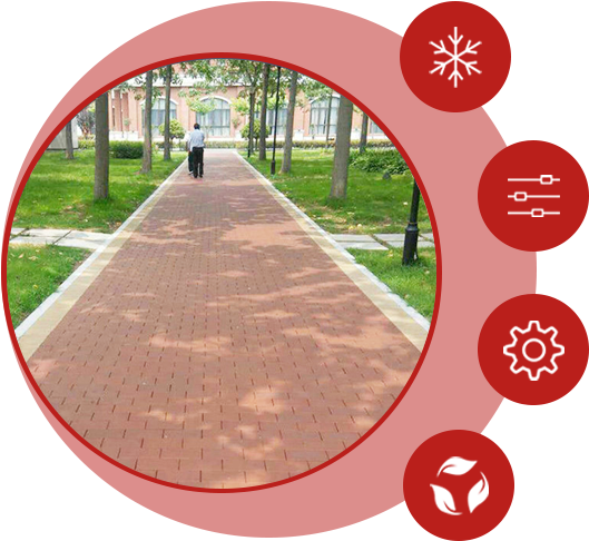 有優(yōu)異的吸水性能,并且表面并沒(méi)有想象中的光滑,下雨后雨水進(jìn)入磚體,粗糙的表面可以給行人和車有較好的摩擦力,使其在雨后有出色的防滑效果。